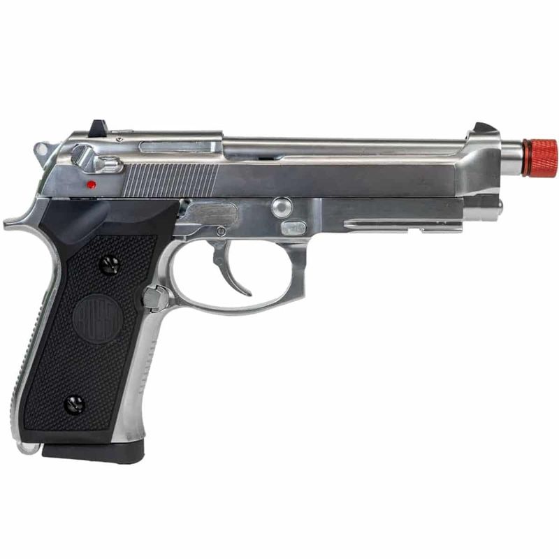 A pistola GBB Rossi M92 Cromada oferece uma ótima velocidade de 97 m/s (320 fps) com bastante precisão e desempenho.