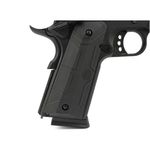 Modelo: 1911 Tipo: GBB (Green Gas Blowback) Propulsão: CO2 12g Hop-up: Ajustável Velocidade: 380fps (115m/s) com BBs 0,20g Material: Alumínio / Fibra de Nylon Comprimento: 238mm Comprimento do cano interno: 112mm Diâmetro interno do cano: 6,03mm Capacidade: 24 BBs (compatível com magazine estendido de 35 BBs - vendido separadamente) Peso total: 776g (pistola + carregador) Rosca: 14mm negativa (CCW) Compatibilidade: Tokyo Marui, KJW Modo de disparo: Semi automático Trava de segurança: Empunhadura + ambidestra lateral
