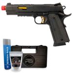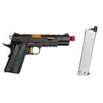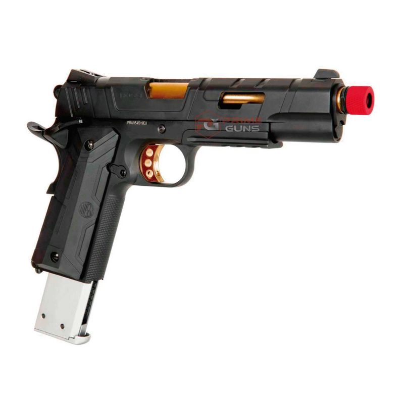 A Pistola Airsoft Rossi Red-Wings Gold 1911 Gás Blowback Kit dispara no modo Semi Automática com velocidade de 300fps - 91m/s e energia de 0,9 Joules Ver mais