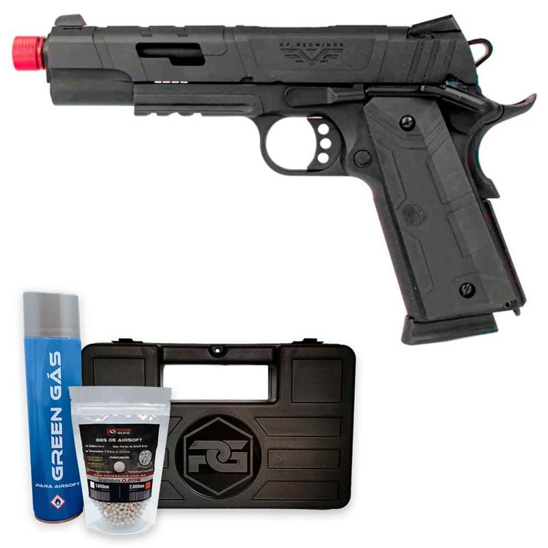 A Pistola RedWings Black possui uma velocidade média de 300fps (91m/s) com Green Gás e BBs .20g