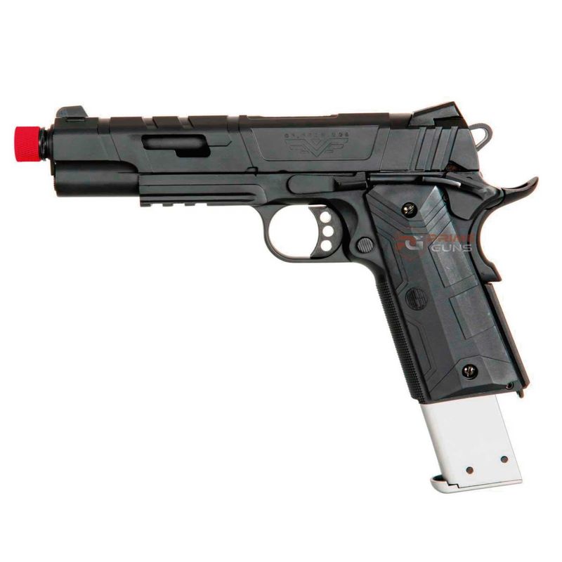 O design moderno e agressivo da pistola RedWings é um verdadeiro charme. O contraste das cores e formatos dessa 1911 são um grande diferencial frente a outras pistolas GBB