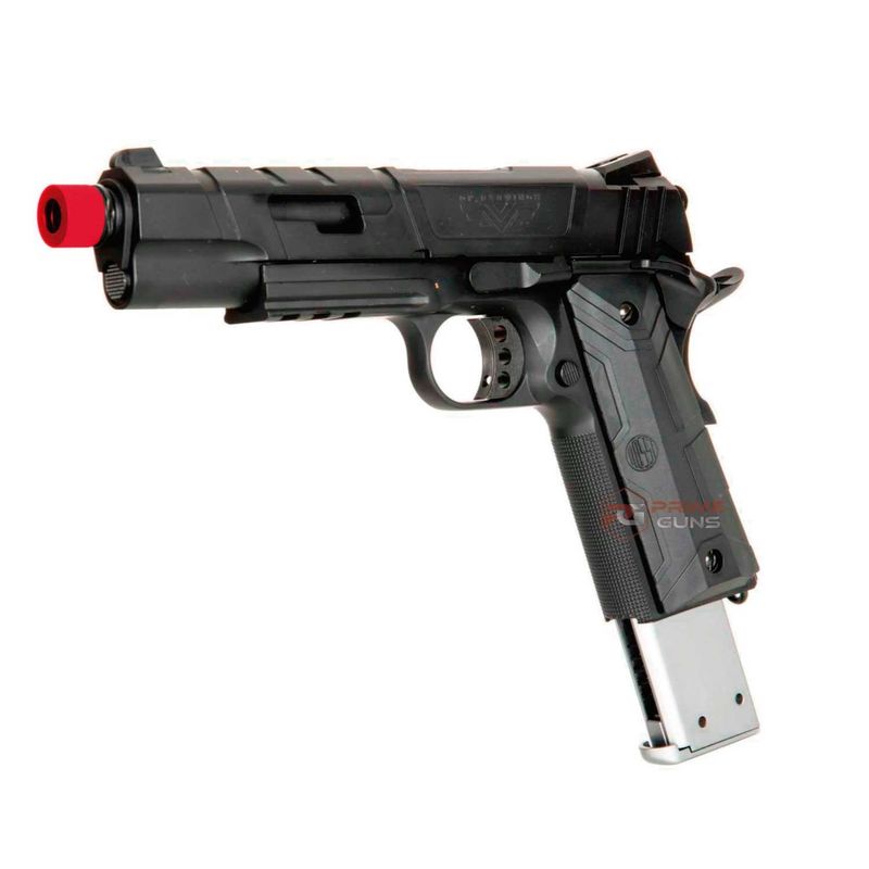 O design moderno e agressivo da pistola RedWings é um verdadeiro charme. O contraste das cores e formatos dessa 1911 é um grande diferencial frente a outras pistolas GBB.