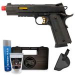 A Pistola Airsoft Rossi RedWings Gold 1911 Gás + Coldre dispara no modo Semi Automática com velocidade de 300fps - 91m/s e energia de 0,9 Joules Ver mais