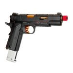 O design moderno e agressivo da pistola RedWings é um verdadeiro charme. O contraste das cores e formatos dessa 1911 são um grande diferencial frente a outras pistolas GBB.