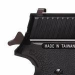 Complementando o conjunto, a P226 Airsoft possui gatilho e guarda-mato em metal, cão funcional e travas funcionais.