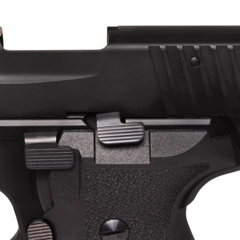 Complementando o conjunto, a P226 Airsoft possui gatilho e guarda-mato em metal, cão funcional e travas funcionais.