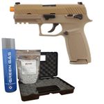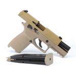 A Pistola Airsoft Sig Sauer P320 F18 TAN Full Metal Slide WE 6mm é uma pistola GBB (Green Gás Blowback) com ferrolho de metal e frame em polímero reforçado, fiel à versão real, garantindo funcionalidade e dimensões compactas.