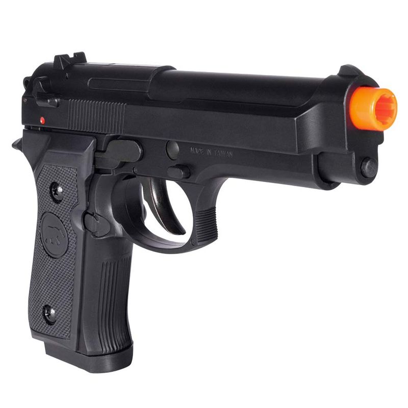 Fabricada em polímero resistente e com magazine em metal, a pistola Beretta da QGK oferece um bom peso e design.