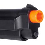 Fabricada em polímero ABS de alta densidade, possui ação por mola (spring), o que significa que não depende de gás ou bateria. Basta puxar o ferrolho a cada disparo.