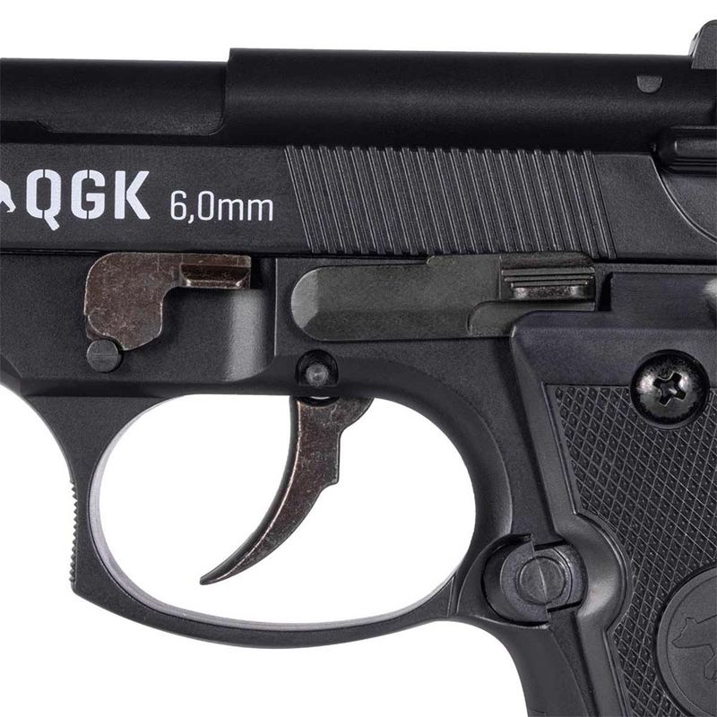 Com 0,2 joules de força, a QGK HS-B92 Beretta tem alcance de até 8 metros com boa precisão e distância efetiva de até 15 metros.