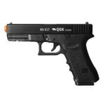 A pistola spring QGK HS-G17 (Glock 17) é uma airsoft que dispara BBs de plástico no calibre 6mm. Ela é fabricada em polímero ABS de alta densidade e possui ação por mola.