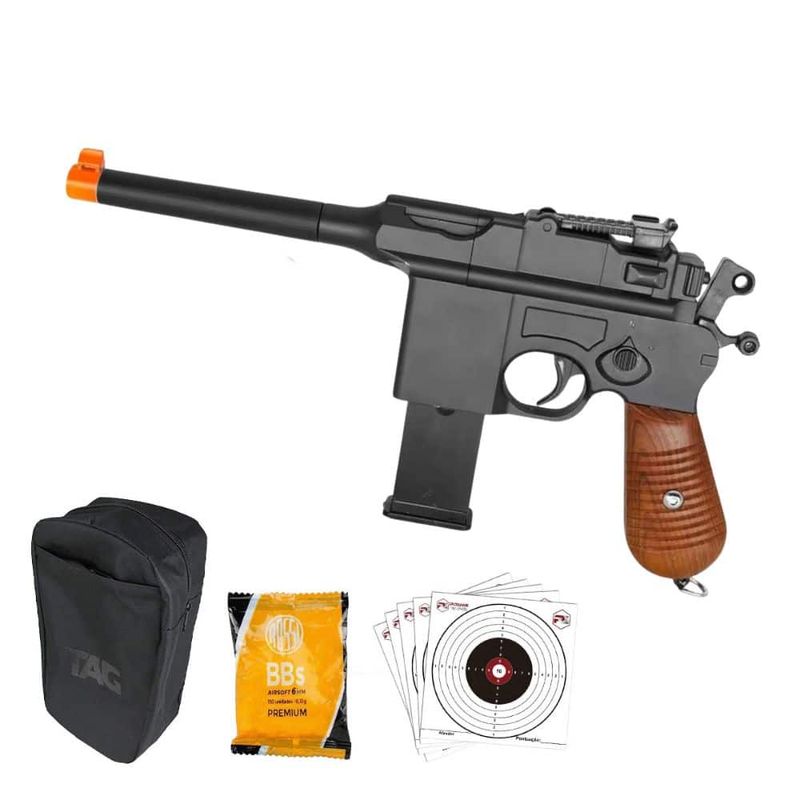 Com seus 0,3 Joules de precisão, a pistola Mauser C-96 é excelente para coleção e tiro ao alvo dentro de casa, tendo um alcance de até 10m.