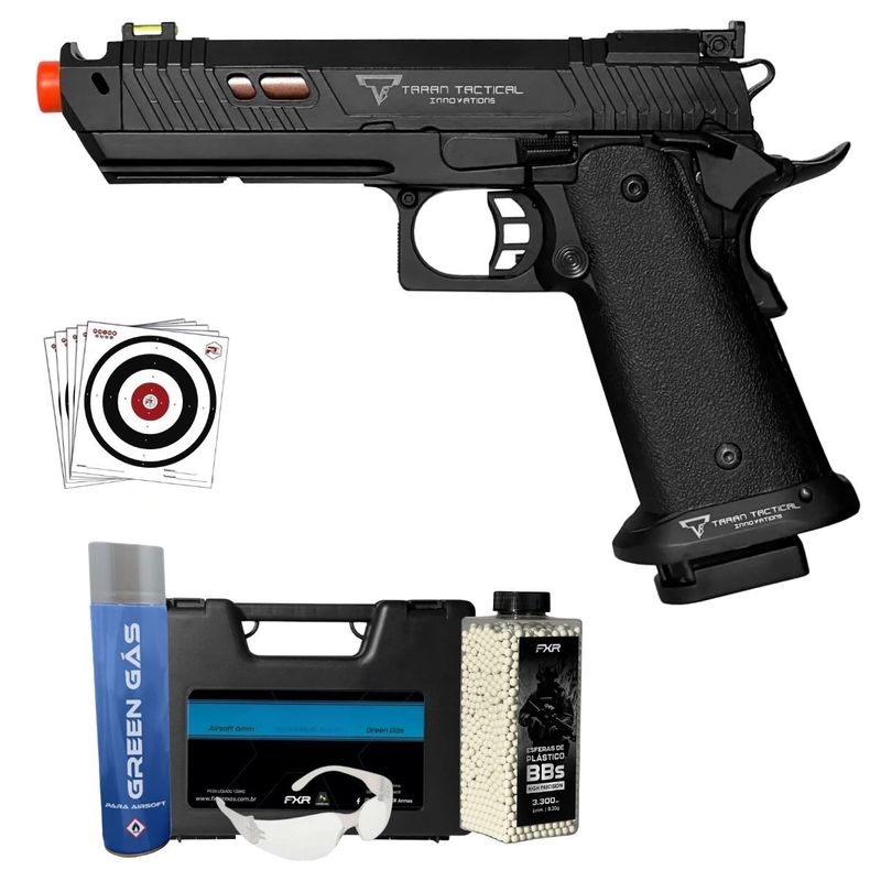 Este modelo traz forte influência do design cinematográfico customizado pela Taran Tactical Innovations, amplamente associado ao universo John Wick, combinando fidelidade estética com funcionamento confiável.