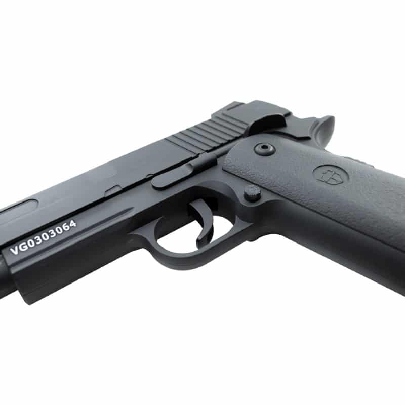 A Pistola 2022 Airsoft Vigor Spring é um produto com fabricação em full metal e partes em polímero com tamanho e design semelhantes à arma original 1911. Esta réplica Colt 1911 Airsoft é fabricada pela Vigor, uma companhia especializada em equipamentos de Airsoft presente no mercado há mais de 30 anos, produzindo pistolas, alvos e rifles com valores competitivos.
