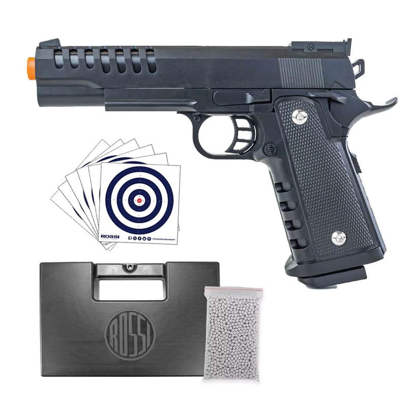 A Pistola Airsoft Vigor 1911 V301 Spring Vigor 6mm + Case dispara no modo Repetição com velocidade de 157fps - 48m/s e energia de 0,5 Joules Ver mais