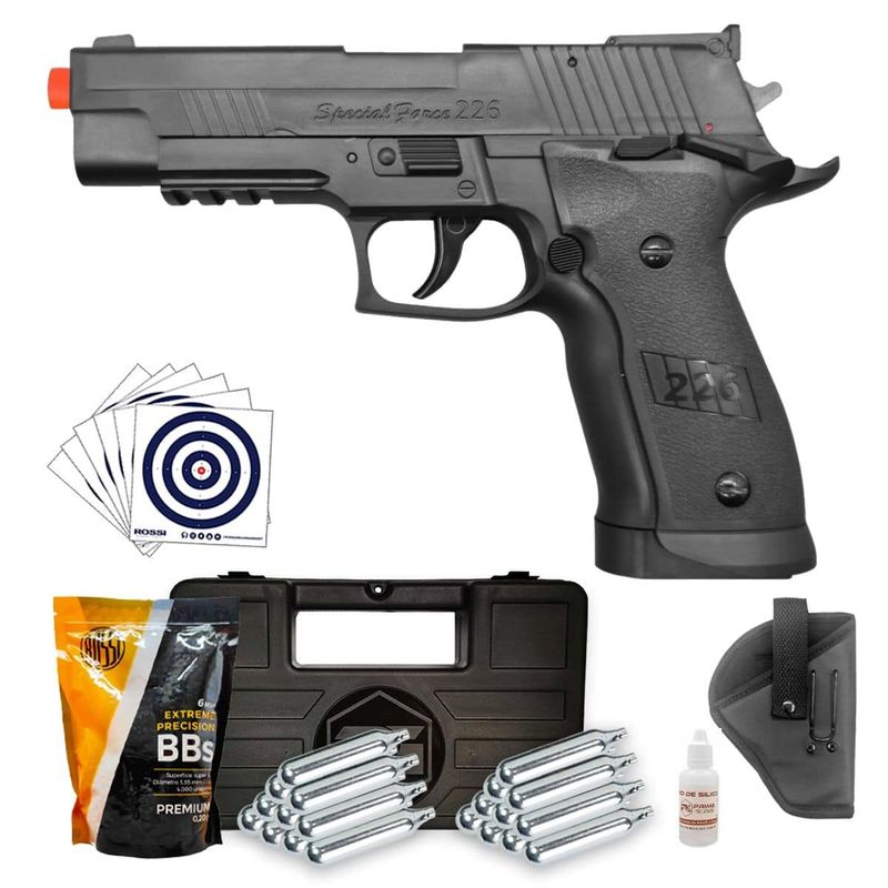 ArmasArmas de AirsoftPistola GBB e Co2Armas Curtas: Pistola e RevólverPistola Airsoft Wingun P226 X4 Co2 6mm NBB Super Kit