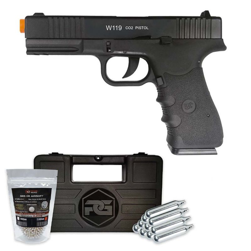 ArmasArmas de AirsoftPistola GBB e Co2Armas Curtas: Pistola e RevólverPistola Airsoft Wingun W119 Slide Metal Co2 6mm Kit