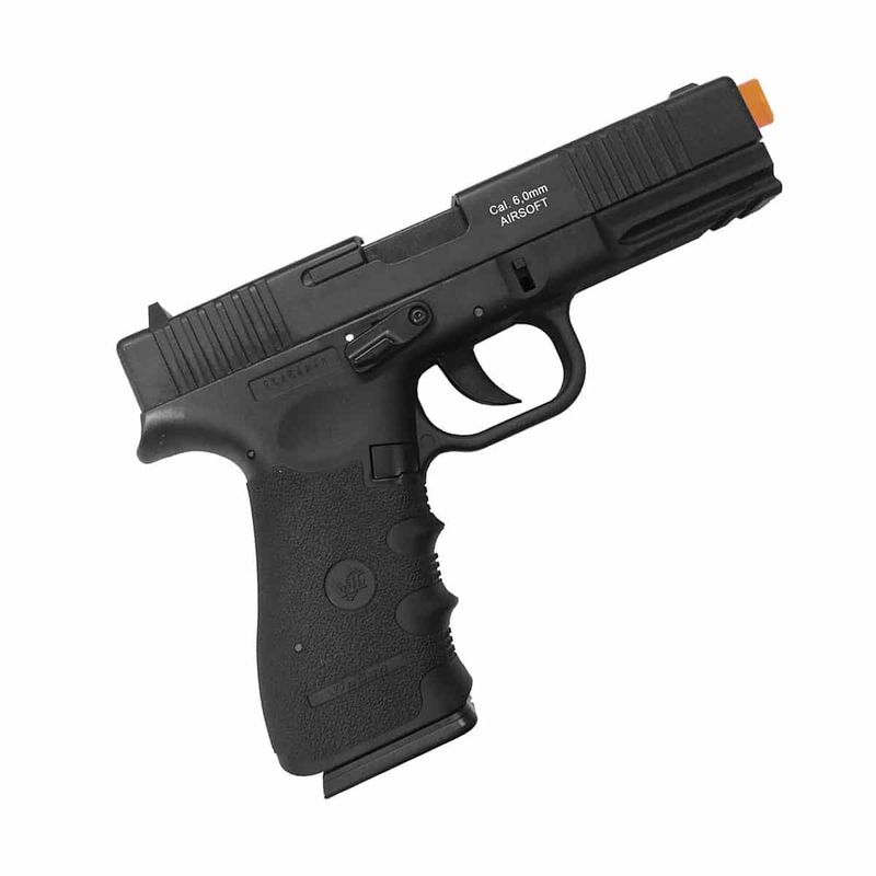 Fabricada em Full Metal Slide com corpo em polímero, a R19 tem peso de 668g, oferecendo ótima ergonomia e realismo.