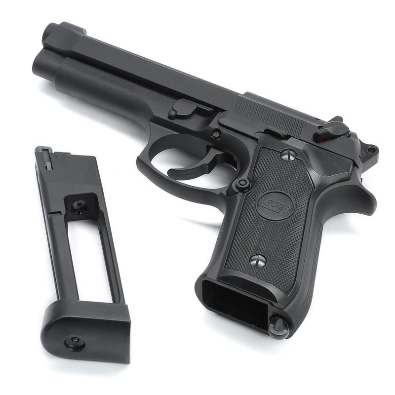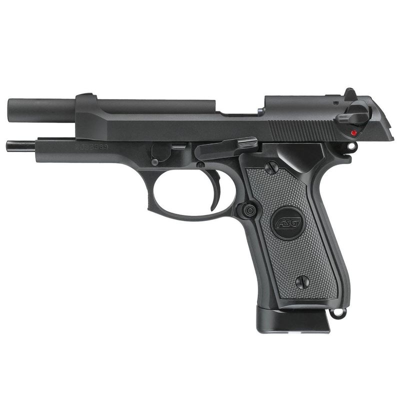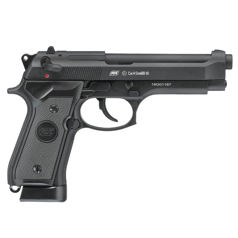 A ASG X9 4,5 mm é a réplica licenciada inspirada na icônica Beretta M92, desenvolvida pela ASG em parceria com a KJ Works. Construída em Full Metal, com peso realista de 885 g, dispara esferas de aço 4,5 mm com potência média de 1,8 Joules (podendo atingir até 2 Joules nos primeiros disparos) e velocidade de até 350 FPS (106 m/s).