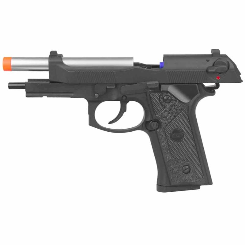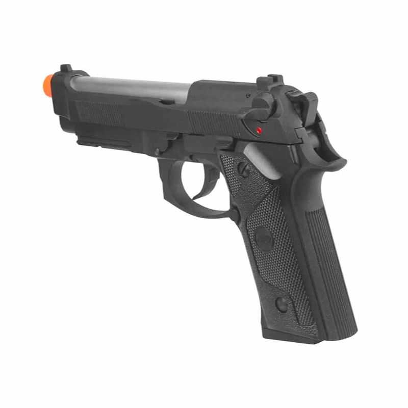 O modelo IA tem trilho frontal para que você possa montar luz e laser. A estrutura e o slide são feitos de metal e com o blowback forte esta pistola é uma réplica muito realista e sólida do clássico M9.