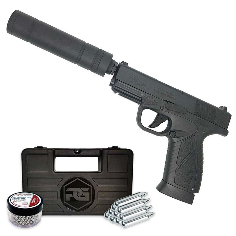 ArmasArmas de Chumbinho AirgunsPistola Co2Armas Curtas: Pistola e RevólverPistola Bersa BP9CC Silenciador Airgun Co2 4,5mm Blowback Kit