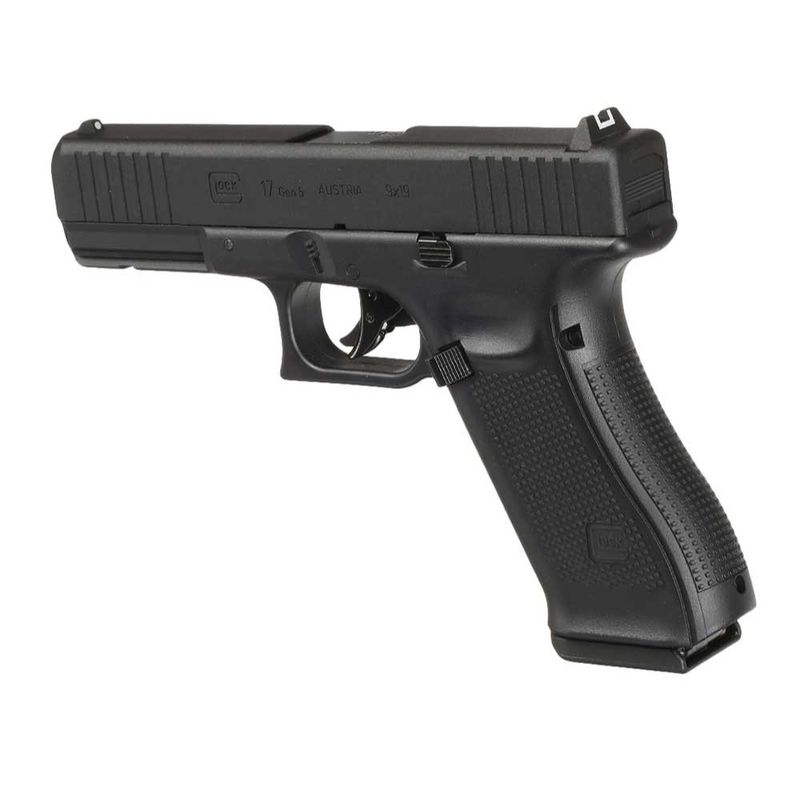 Externamente, continua sendo a contrapartida perfeita do modelo moderno de sucesso. Como uma pistola de tamanho normal, a GLOCK 17 impressiona desde o início com uma empunhadura generosamente dimensionada, uma longa linha de visada e o design mundialmente famoso e inconfundível. Graças às características típicas do Gen5, como bordas arredondadas, botão de liberação do carregador reversível e serrilhas frontais, tanto a arma de pressão quanto o modelo real atendem aos requisitos atuais. Suas dimensões exatas completam a experiência autêntica e permitem o uso de coldres padrão. Além da segurança de gatilho típica da GLOCK, esta versão também conta com segurança deslizante sob o cano.