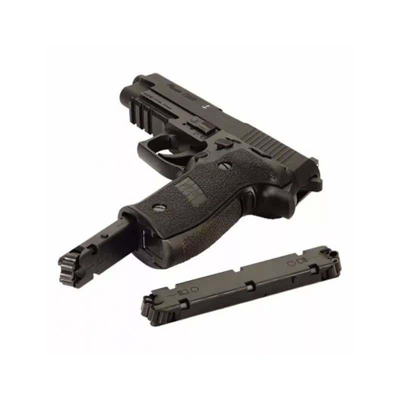 A P226 conta com sistema Blowback funcional que suaviza o gatilho e proporciona maior realismo, embora o ferrolho não trave totalmente aberto após esvaziar o magazine (característica normal para pistolas de chumbinho CO2).