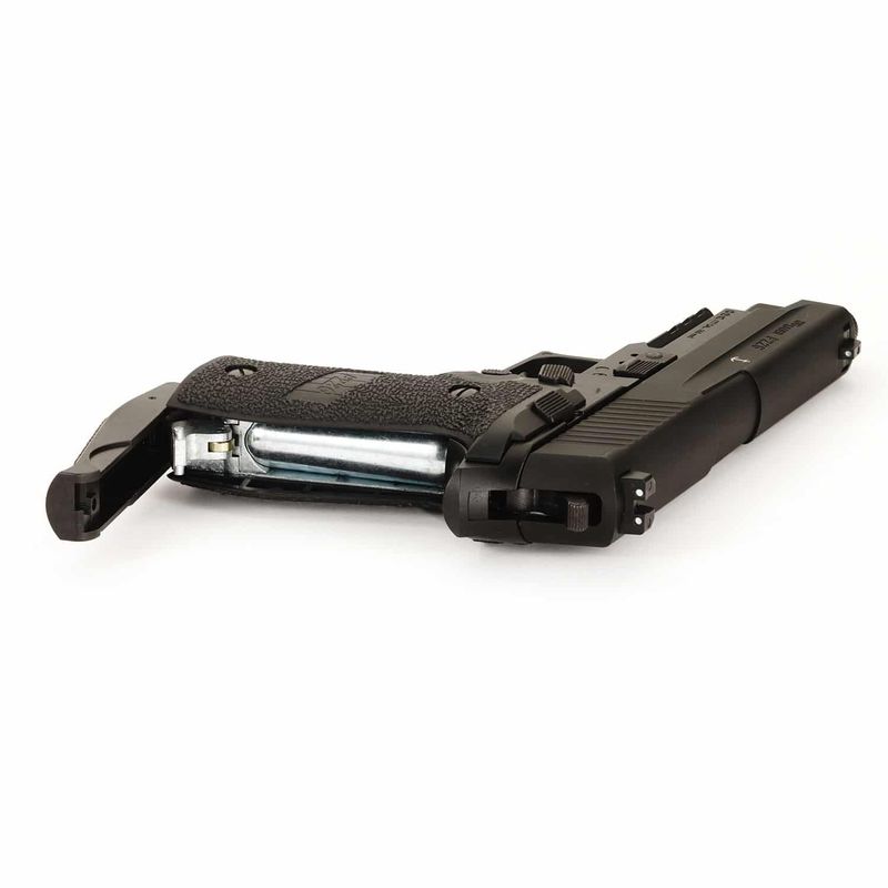 Fabricada pela alemã GSG, do mesmo grupo da Sig Sauer, a P226 de chumbinho é uma réplica de alta fidelidade, com peso realista de 1,1kg, igual à arma original.
