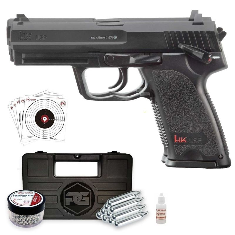 Aqui está uma descrição completa da pistola airgun HK USP Co2 4,5mm NBB: