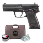 A pistola airgun HK USP Co2 4,5mm NBB é ideal para prática de tiro ao alvo em ambientes fechados ou ao ar livre, bem como para treinamento de tiro e prática de tiro esportivo. Ela é destinada para uso recreativo e não é uma arma de fogo real.