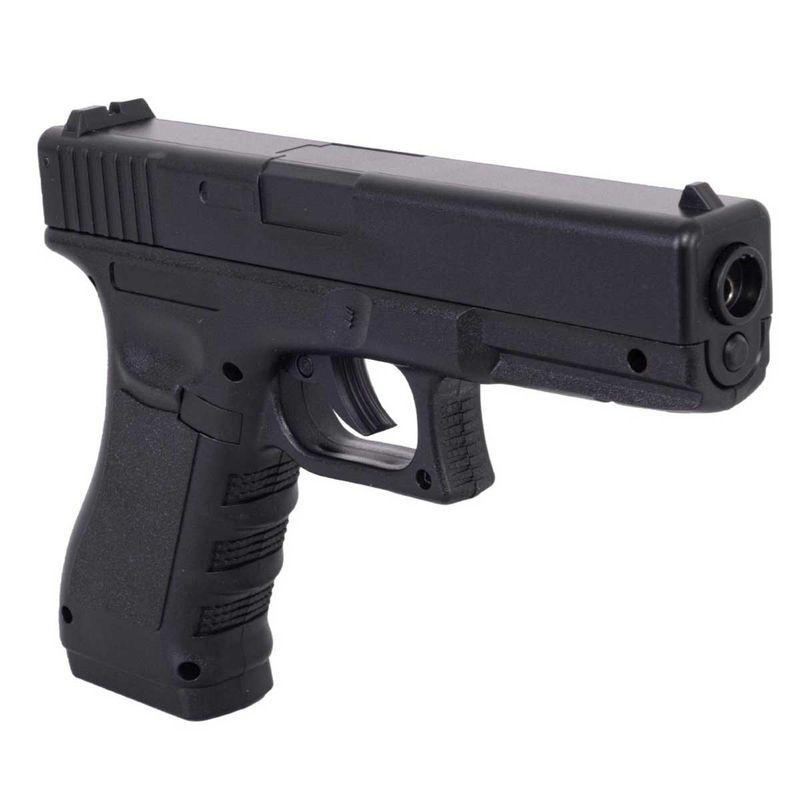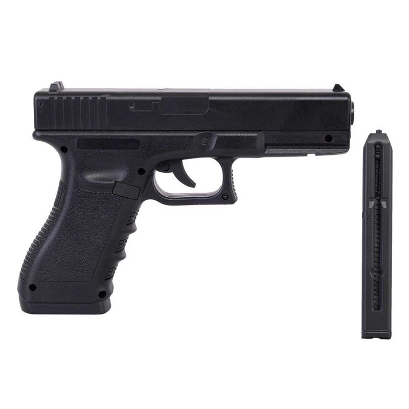 Esta réplica apresenta excelente realismo e tamanho full size (mesmo tamanho da Glock 17 real), característica rara em pistolas de entrada.