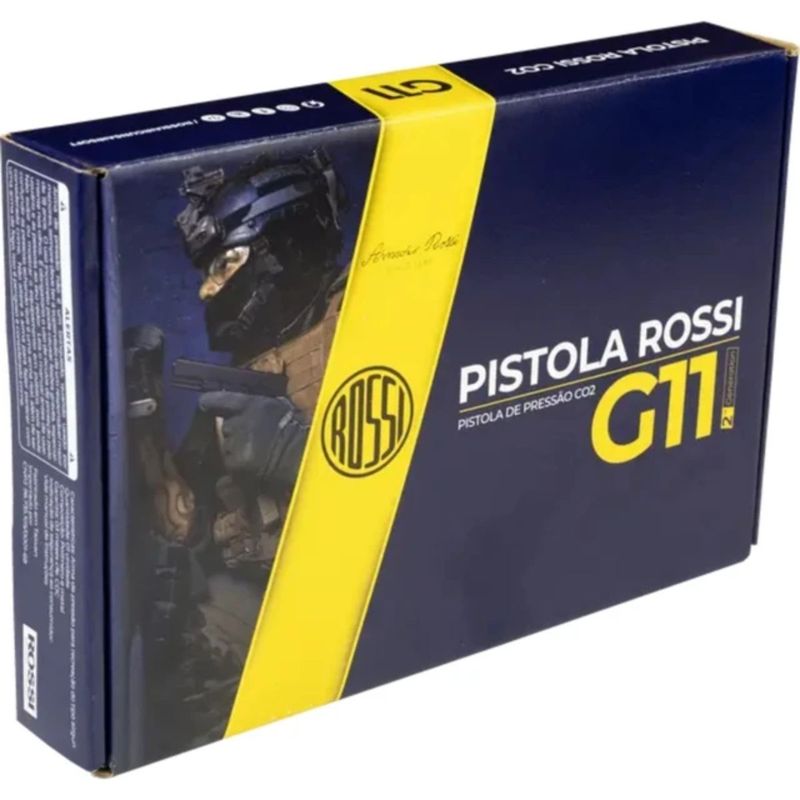 A Rossi G11 Nova Geração (G11 G2) destaca-se pelo desempenho entre pistolas CO2 6 mm. Com potência próxima de 4,4 J e velocidade média de 100 m/s, apresenta tiros consistentes e elevada eficiência energética. O sistema Non-Blowback contribui para maior economia de CO₂, possibilitando em condições ideais mais de 100 disparos por cilindro.
