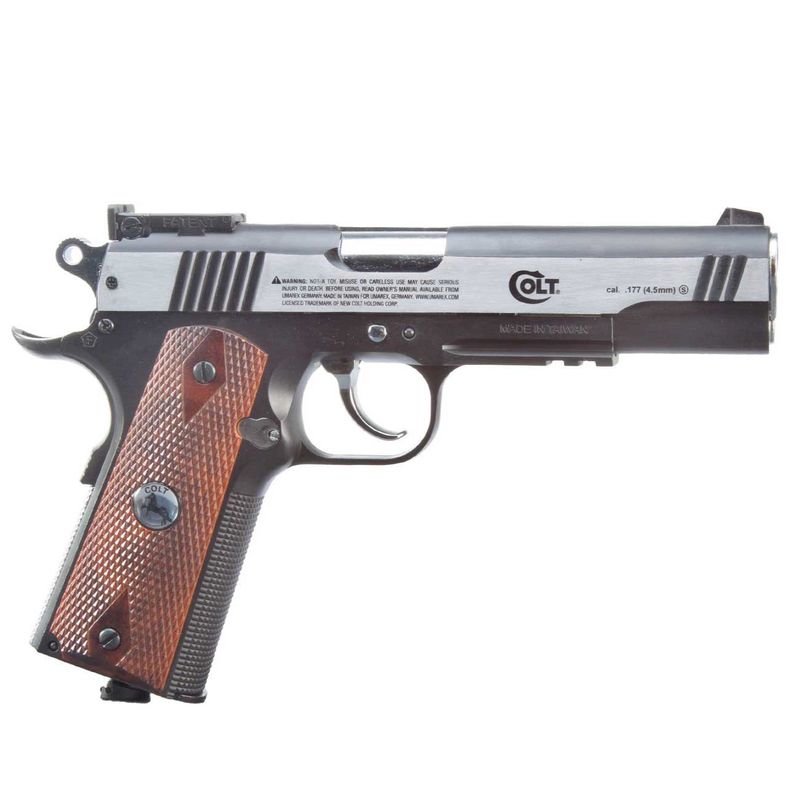 A pistola 1911 Special Combat Classic CO2 da Colt - em calibre 4,5mm esfera de aço - vem como uma versão pesada toda em metal.