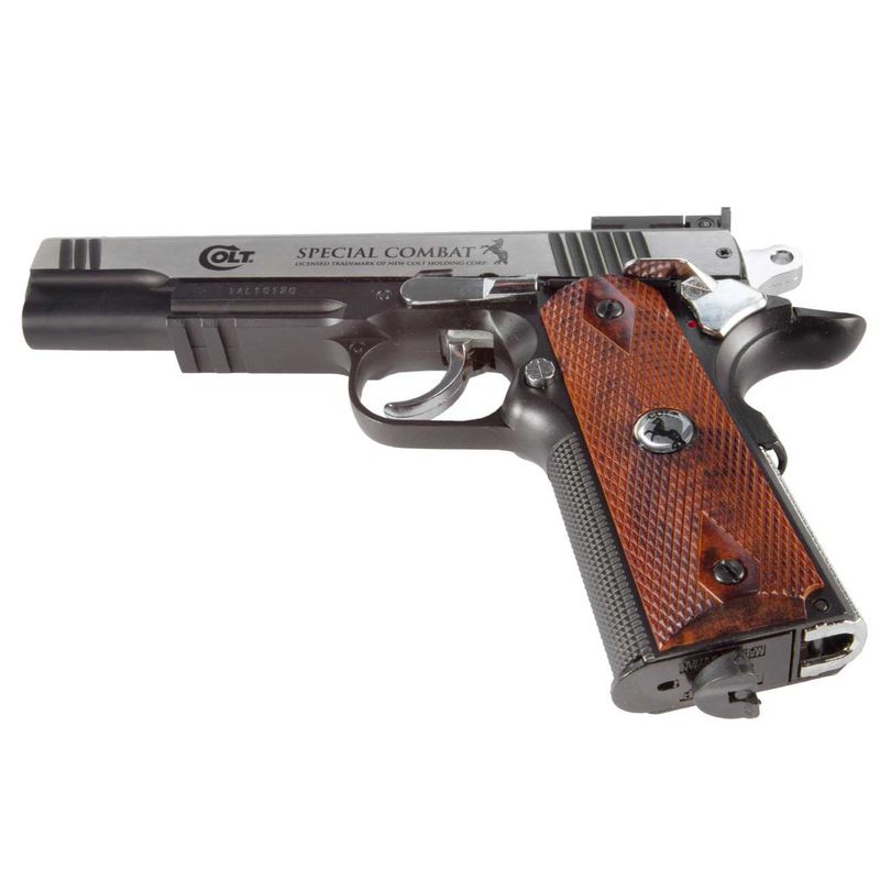 A pistola 1911 Special Combat Classic CO2 da Colt - em calibre 4,5mm esfera de aço - vem como uma versão pesada toda em metal.