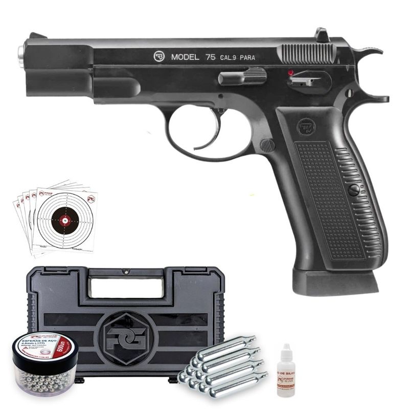 A airgun CZ75 clássica possui velocidade média de 328fps, com um rendimento incrível de mais de 50 tiros por cilindro de CO2.
