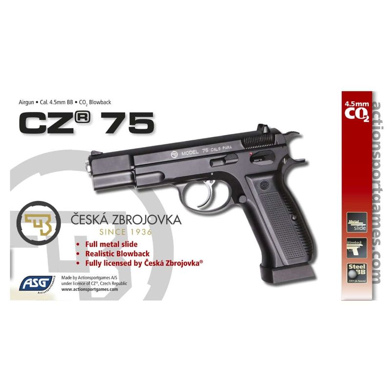 Com a versão Full Metal do Ceska Zbrojovka, a ASG lançou uma réplica bem-sucedida da pistola da polícia tcheca como arma de pressão por CO2. A pistola CZ75 ASG trabalha com um cartucho de 12g de CO2 e esferas de aço de 4,5mm.