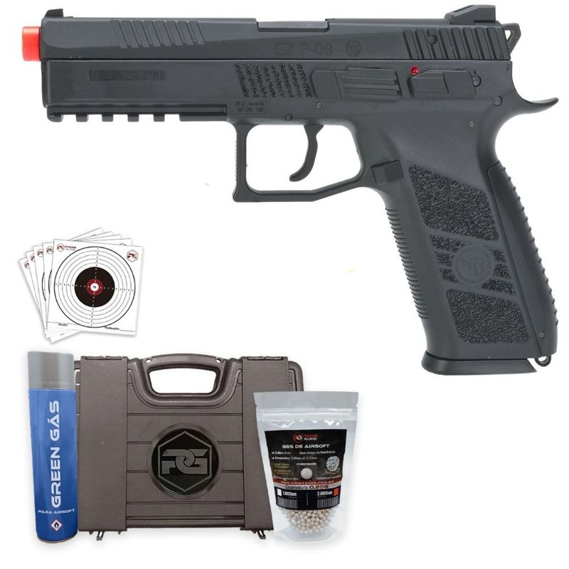 ArmasArmas de AirsoftPistola GBB e Co2Armas Curtas: Pistola e RevólverPistola de Airsoft CZ P-09 Black GBB 6mm Polímero Kit