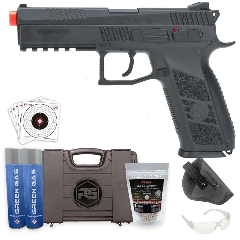 ArmasArmas de AirsoftPistola GBB e Co2Armas Curtas: Pistola e RevólverPistola de Airsoft CZ P-09 Black GBB 6mm Polímero Super Kit