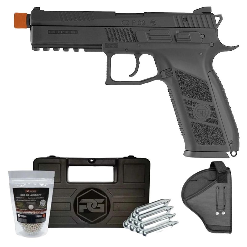 Pistola de Airsoft CZ P-09 CO2 Blowback 6mm Polímero Black + Coldre