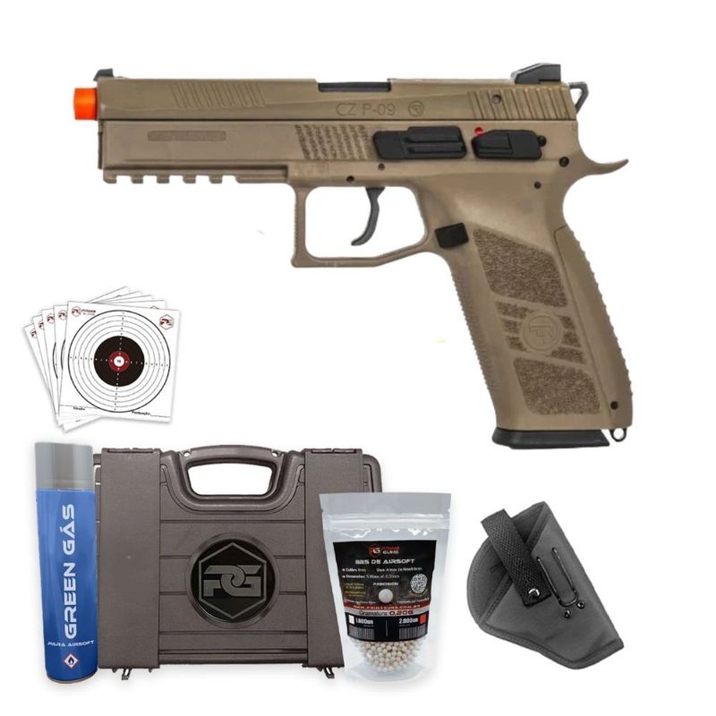 Pistola de Airsoft CZ P-09 GBB FDE Blowback 6mm Polímero + Coldre