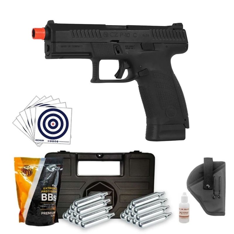 A Pistola de Airsoft CZ P-10 C OR-RD ASG CO2 6mm Super Kit dispara no modo Semi Automática com velocidade de 328fps - 100m/s e energia de 1 Joules Ver mais