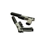 A pistola conta ainda com cano roscado para supressor (adaptador incluso), miras elevadas, trilho inferior Picatinny para acessórios, empunhadura emborrachada ergonômica e trava ambidestra.
