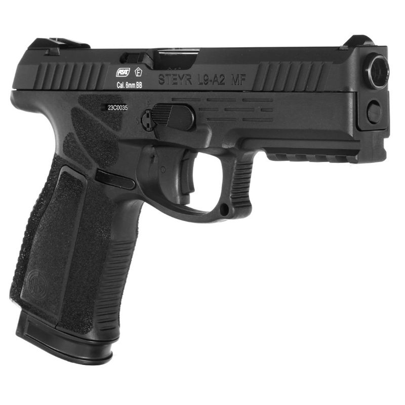 A Steyr L9-A2 é a primeira pistola da linha Steyr Arms licenciada oficialmente com funcionamento exclusivo por CO2 com blowback total, desenvolvida pela ASG em parceria com a KJ Works.