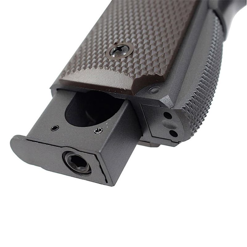A pistola 1911 A1 é fabricada em metal e polímero ABS de alta densidade e oferece ótimo acabamento, design e resistência.