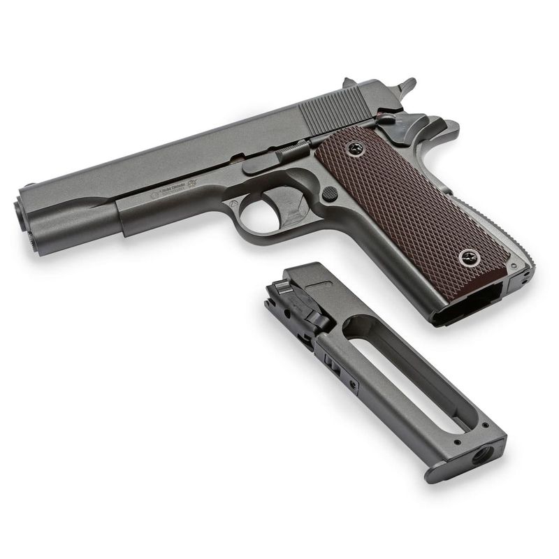 Apesar de não contar com sistema blowback, sua eficiência e autonomia são superiores, chegando a até 100 disparos por cilindro. Além disso, o design clássico 1911 garante excelente empunhadura e apelo colecionável.