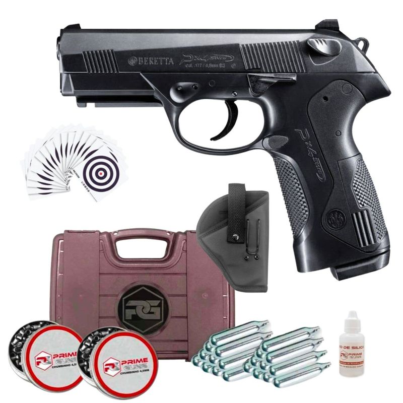 A pistola de ar Beretta PX4 Storm CO2 no calibre 4,5 mm (0,177) é a escolha certa, especialmente para atiradores recreativos que não querem se comprometer com BBs ou diabolos. Com a PX4 Storm você pode disparar BBs de 4,5 mm e/ou diabolos de 4,5 mm como quiser.