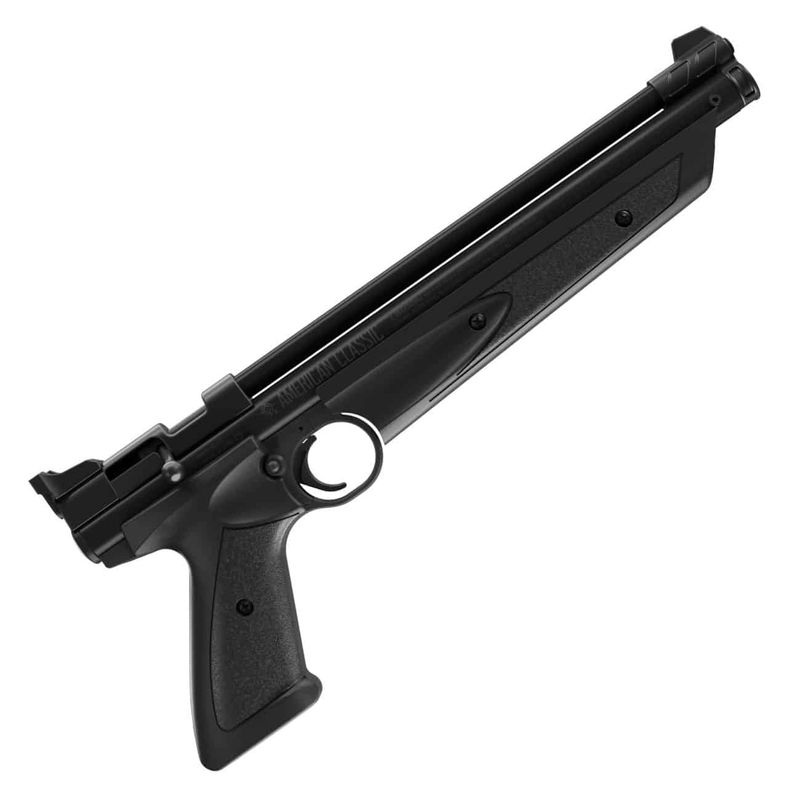 O Crosman American Classic é o melhor plinker de quintal. Esta pistola de chumbo calibre .177 apresenta uma ação de ferrolho de tiro único para facilitar o armar e carregar e um cano de aço estriado para precisão. Obtenha potência de bombeamento variável com o antebraço de bombeamento fácil e controle a velocidade de até 695 fps para seu estilo de tiro ao alvo. Vem com uma mira traseira totalmente ajustável e uma mira frontal de lâmina fixa.