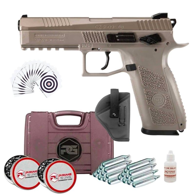 Com até 4,5 Joules de energia, a CZ 75 P-09 TAN é uma das pistolas de CO2 mais fortes da categoria, com ótimo desempenho para prática de tiro.