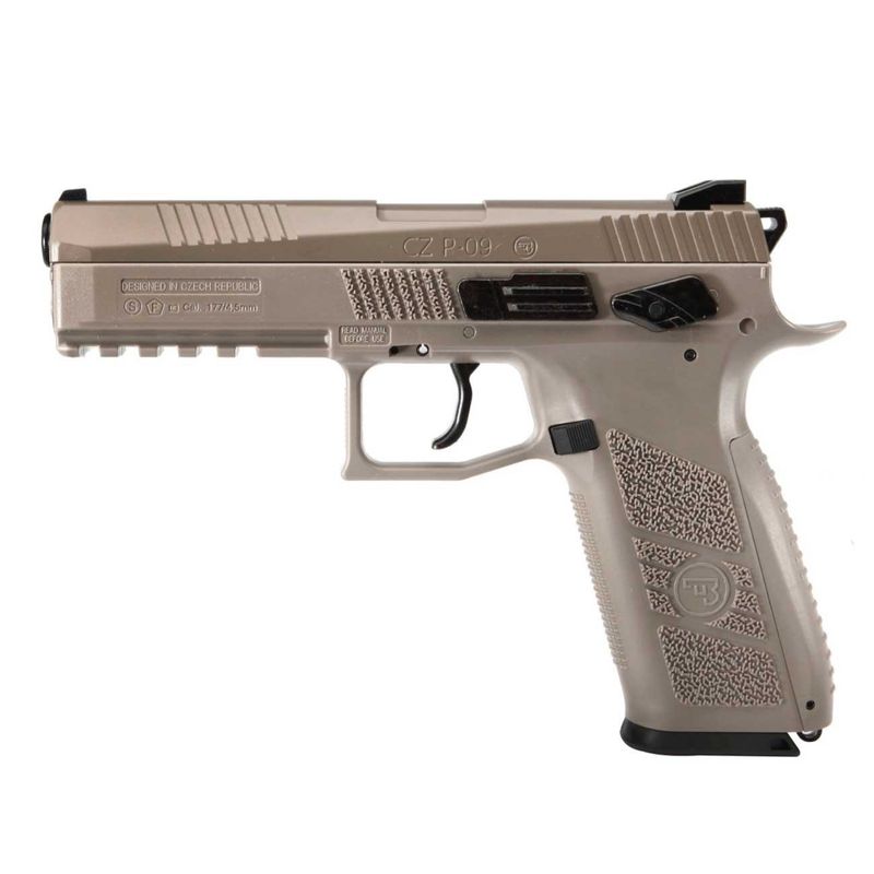 A Pistola de Chumbinho CZ P-09 TAN/Desert CO2 ASG 4,5mm dispara no modo Semi Automática com velocidade de 492fps - 150m/s e energia de 4,5 Joules Ver mais