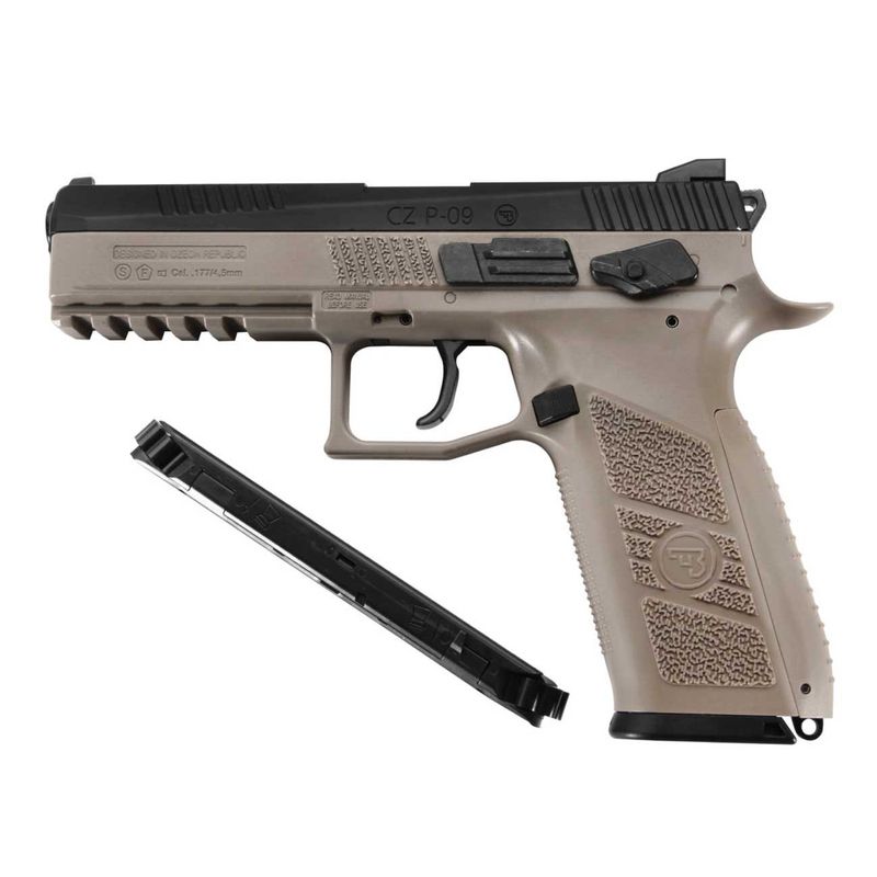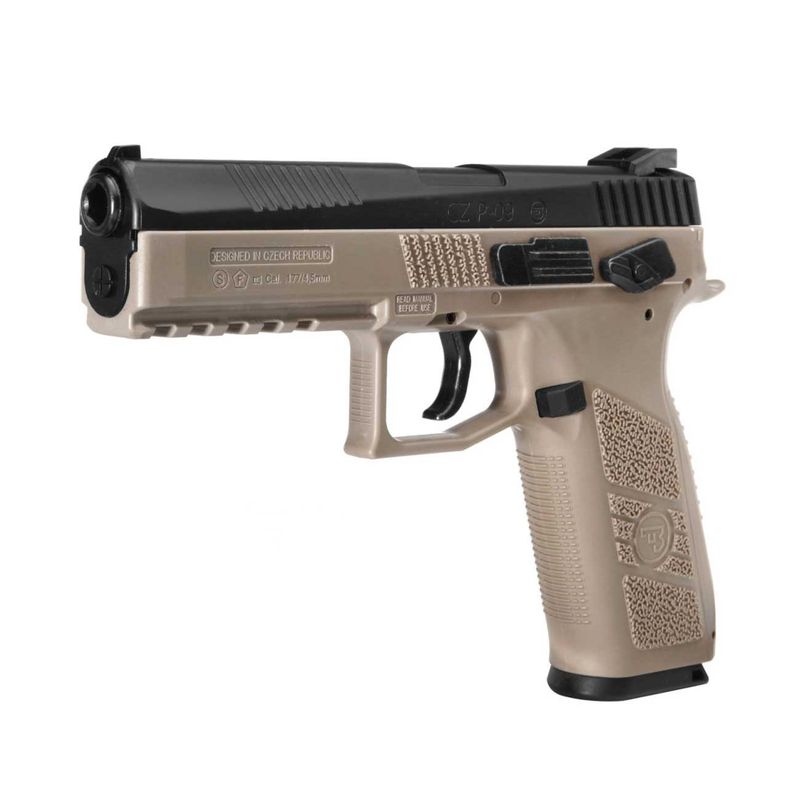 A ASG CZ P09 TAN e Preta vem em calibre 4,5 mm Diabolo e BB com número de série consecutivo e é uma réplica de alta qualidade da pistola que é popular entre o exército e a polícia desde a década de 1970. O modelo tem um cano de cinco polegadas como uma versão "full size".